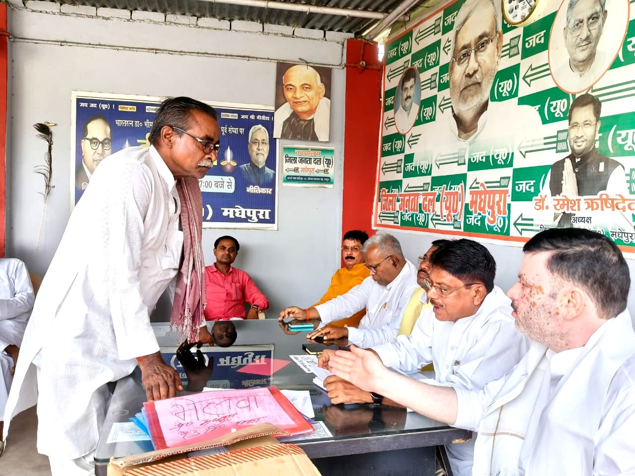 पूर्व मंत्री सह जिला अध्यक्ष प्रोफेसर डॉ रमेश ऋषि देव ने सभी जदयू के प्रखंड अध्यक्ष एवं महत्वपूर्ण साथियों के नेताओं को विश्व स्त्री क्रियान्वयन समिति का अध्यक्ष एवं सदस्य बनने पर माननीय मुख्यमंत्री श्री नीतीश कुमार को बधाई देते हुए कहा कि जल्द ही संबंधित प्रखंड के प्रखंड विकास पदाधिकारी कार्यालय आवंटित कर सभी विशु्त्री के अध्यक्ष एवं सदस्य की बैठक आयोजित करेंगे तथा अपने-आप ने क्षेत्र में ज्वलंत समस्याओं के समाधान हेतु आप लोग सही ढंग से कार्य करेंगे तथा नीतीश कुमार के द्वारा बिहार के लिए किए गए विकास कार्यक्रम को जनमानस में फैलाएंगे बैठक में जदयू के नेता बीवी प्रभाकर प्रदेश महासचिव डॉक्टर सत्यजीत यादव जिला जदयू के मुख्य प्रवक्ता डॉक्टर राजीव जोशी अशोक चौधरी मनोज सिंह कुशवाहा मधेपुरा विधानसभा प्रभारी मोहम्मद मोइनुद्दीन अक्षय झा रामचंद्र चौधरी मोहम्मद खुर्शीद आलम शैलेश कुमार सिंह राजा पाराशर युगल पटेल आदि जदयू के नेताओं ने बैठक में शामिल होकर जनता दल यूनाइटेड को और सशक्त बनाने पर बल दिया।