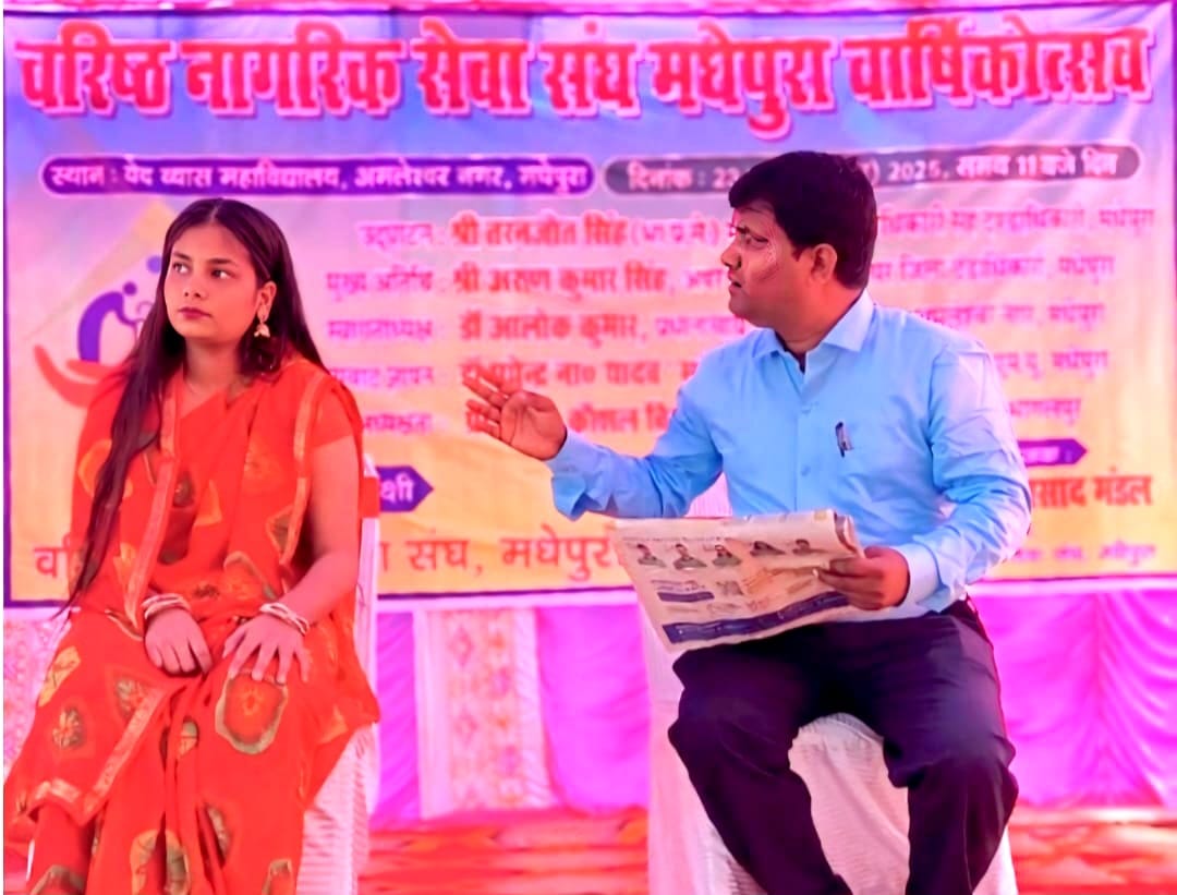 Madhepura:जिला मुख्यालय के वेद व्यास महाविद्यालय के परिसर में वरिष्ठ नागरिक समारोह में चर्चित रंगकर्मी विकास कुमार लिखित और निर्देशित वृध्दाश्रम नामक नाटक की जीवंत प्रस्तुति सृजन दर्पण के रंगकर्मियों ने दिया।संदेश मूलक प्रस्तुति से मौजूद दर्शकों को कलाकारों ने बेहतरीन अभिनय से भोवविवोर कर दिया। नाटक के संवाद के माध्यम से रंगकर्मियों ने यह दिखाया कि बदलते दौर में आज की पीढ़ी अपने माता-पिता की देखभाल नहीं करना चाहती है। इसके लिए उनके पास कई कारण हैं, जिनमें से एक यह है कि “माता-पिता रूढ़िवादी हैं और अपने आधुनिक समाज में समायोजित नहीं हो सकते हैं”।
